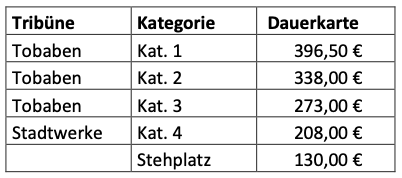 Die Dauerkarten-Preise für 13 Bundesliga-Heimspiele: